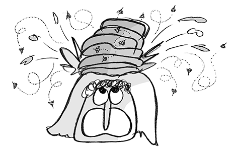 The nest landed with a “THUMP!” directly on Grundwaldette’s head.